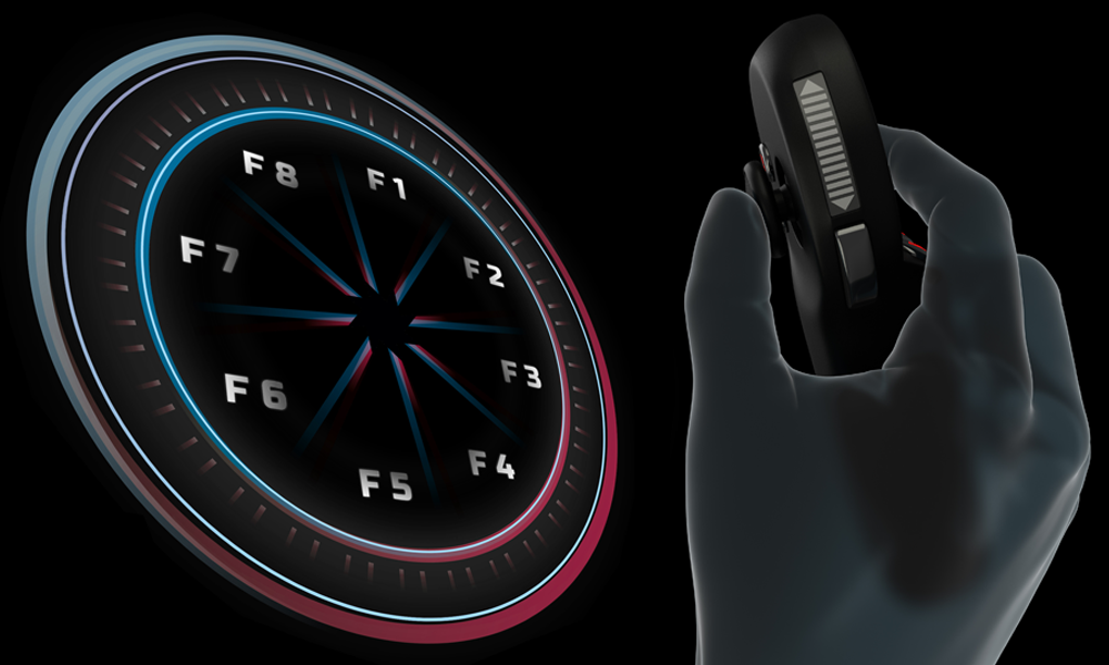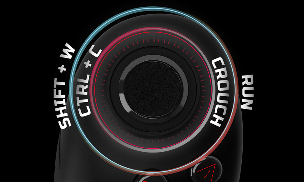 The joystick can be configured to work as functional buttons, e.g. for a weapon-wheel manipulation in action games.