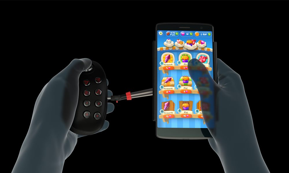 Both sub-controllers work similarly to alternative products. Pressing a button triggers an action in the game. Each button can play a few different roles. The smartphone is not paired with the controllers and can work independently.